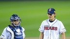 [OSEN=잠실,지형준 기자] 9일 오후 서울 잠실구장에서 열린 2012 팔도 프로야구 준플레이오프 2차전 두산 베어스와 롯데 자이언츠의 경기, 5회초 2사 1루에서 두산 노경은이 롯데 김주찬을 우익수 플라이로 처리하고 박수를 치고 있
