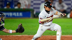 [OSEN=부산,이대선 기자] 11일 오후 부산 사직구장에서 열린 2012 팔도 프로야구 준플레이오프 3차전 두산 베어스와 롯데 자이언츠의 경기, 5회초 2사 1,2루 두산 오재원이 롯데 김성배의 투구를 맞고 있다. 9일 준플레이오프 2차전을
