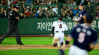 [OSEN=부산,지형준 기자] 11일 오후 부산 사직구장에서 열린 2012 팔도 프로야구 준플레이오프 3차전 두산 베어스와 롯데 자이언츠의 경기, 4회말 1사 3루에서 롯데 용덕한이 스퀴즈 작전에 실패하자 3루주자 전준우가 귀루하다 태