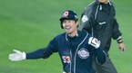 [OSEN=부산,지형준 기자] 11일 오후 부산 사직구장에서 열린 2012 팔도 프로야구 준플레이오프 3차전 두산 베어스와 롯데 자이언츠의 경기, 7회초 1사 1,2루에서 두산 오재원이 2타점 적시 3루타를 날리고 기뻐하고 있다. 너머로 두산