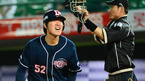 [OSEN=부산,이대선 기자] 12일 오후 부산 사직구장에서 열린 2012 팔도 프로야구 준플레이오프 4차전 두산 베어스와 롯데 자이언츠의 경기, 3회초 2사 1,2루 두산 윤석민의 좌전 적시타때 홈을 밟은 김재호가 환호하고 있다. 연패로
