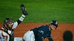 [OSEN=부산,이대선 기자] 12일 오후 부산 사직구장에서 열린 2012 팔도 프로야구 준플레이오프 4차전 두산 베어스와 롯데 자이언츠의 경기, 2회말 2사 1,2루 롯데 용덕한이 자신의 타구에 다리를 맞고 넘어지고 있다. 연패로 탈락 위