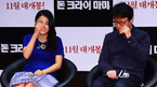 [OSEN=민경훈 기자] 15일 오전 서울 롯데시대마 건대입구에서 진행된 '돈 크라이 마미' 제작보고회에서 유선과 남보라, 김용한 감독이 예고편을 보고 눈물을 흘리고 있다. '돈 크라이 마미'는 세상에서 하나뿐인 딸을 잃게 된 엄