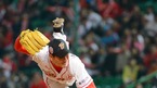 [OSEN=인천,이대선 기자] 16일 오후 인천 문학구장에서 열린 2012 팔도 프로야구 플레이오프 1차전 SK 와이번스와 롯데 자이언츠의 경기, 2회초 1사 SK 김광현이 롯데 전준우를 삼진으로 처리하고 미소를 짓고 있다. 김광현(24·SK)과