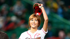 [OSEN=인천,이대선 기자] 17일 오후 인천 문학구장에서 열린 2012 팔도 프로야구 플레이오프 2차전 SK 와이번스와 롯데 자이언츠의 경기, 경기에 앞서 SK 배지현 치어리더가 시구 후 관중석을 향해 인사를 하고 있다. 롯데와 SK는 각