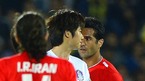 [OSEN=테헤란(이란),박준형 기자] 17일 새벽(한국시간) 이란 테헤란 아자디 스타디움에서 열린 '2014 브라질 월드컵 최종예선' 4차전 한국과 이란의 경기 전반 이란의 거친 태클에 박주영이 항의하고 있다. 2승 1무 승점 7점을 기록