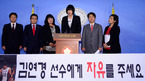 [OSEN= 곽영래 기자] 19일 오전 서울 여의도 국회 정론관 기자회견장에서 김연경이 어미니와, 민주 통합당 전병헌, 노웅례, 최민희 의원과 기자회견을 하고 있다. 김연경은 최근 국제배구연맹(FIVB)이 선수 신분을 흥국생명 선수로