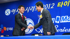 [OSEN=인천,박준형 기자] 22일 오후 인천 문학구장 대회의실에서 2012 아시아시리즈 타이틀 스폰서 조인식이 열렸다. KBO 양해영 사무총장과 조영기 넷마블 부문대표가 악수를 나누고 있다. 오는 11월 8일부터 12일까지 부산 사직야