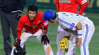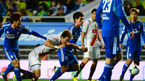 [OSEN=수원, 민경훈 기자] 24일 저녁 수원월드컵경기장에서 열린 '현대오일뱅크 K리그 2012' 수원 삼성과 경남 FC 경기에서 전반 경남 강승조가 수비에 걸려 넘어지고 있다. FC서울과 부산 아이파크를 연파한 뒤 A매치 휴식기에 돌입