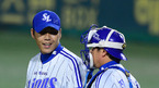 [OSEN=대구,박준형 기자] 24일 오후 대구구장에서 열린 '2012 팔도 프로야구' 삼성 라이온즈와 SK 와이번스 한국시리즈 1차전,8회초 2사 1루 권혁과 교체된 삼성 오승환이 진갑용과 이야기를 나누고 있다. 삼성과 SK는 선봉장으로 윤