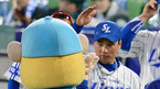 [OSEN=대구 ,백승철 기자] 24일 오후 대구구장에서 열리는 '2012 팔도 프로야구' 삼성 라이온즈와 SK 와이번스 한국시리즈 1차전 경기 전 이승엽이 마스코트 블레오와 장난을 치고 있다. 삼성과 SK는 선봉장으로 윤성환(31·삼성)과
