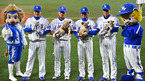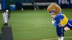 [OSEN=대구,지형준 기자] 24일 오후 대구구장에서 열린 '2012 팔도 프로야구' 삼성 라이온즈와 SK 와이번스의 한국시리즈 1차전, 경기에 앞서 삼성 마스코트 블레오가 우승 트로피 앞에서 우승 기원 기도를 하고 있다 삼성과 SK는 선