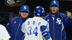 [OSEN=대구,지형준 기자] 25일 오후 대구구장에서 열린 2012 팔도 프로야구 삼성 라이온즈와 SK 와이번스의 한국시리즈 2차전, 3회말 2사 만루에서 삼성 최형우가 만루포를 날리고 동료선수들의 축하를 받고 있다 홈에서 1승이라도