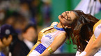 [OSEN=대구,지형준 기자] 25일 오후 대구구장에서 열린 2012 팔도 프로야구 대구 라이온즈와 SK 와이번스의 한국시리즈 2차전, SK 치어리더 배수현이 몸에 테이핑을 하고 열띤 응원을 펼치고 있다. 홈에서 1승이라도 더 거두고 싶은