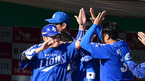 [OSEN=인천,박준형 기자] 28일 오후 인천 문학구장에서 열린 2012 팔도 프로야구 삼성 라이온즈와 SK 와이번스의 한국시리즈 3차전, 3회말 무사 만루 삼성 이승엽의 역전 2타점 적시타때 득점 올린 김상수와 배영섭이 환호하고 있다
