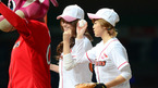 [OSEN=인천, 지형준 기자] 29일 오후 인천 문학구장에서 열린 '2012 팔도 프로야구' SK 와이번스와 삼성 라이온즈의 한국시리즈 4차전, 경기에 앞서 시구 시타자로 나선 가수 시크릿 송지은 전효성이 인사를 하고 있다 지난 28일 열린