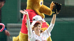 [OSEN=인천, 지형준 기자] 29일 오후 인천 문학구장에서 열린 '2012 팔도 프로야구' SK 와이번스와 삼성 라이온즈의 한국시리즈 4차전, 경기에 앞서 가수 시크릿 송지은이 시타를 마치고 즐거워하고 있다 지난 28일 열린 3차전에서 SK