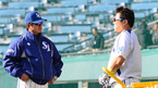 [OSEN=잠실,박준형 기자] 31일 오후 서울 잠실구장에서 열린 '2012 팔도 프로야구' 삼성 라이온즈와 SK 와이번스의 한국시리즈 5차전, 경기에 앞서 삼성 류중일 감독이 최형우와 이야기를 나누고 있다. 2승 2패다. 각각 홈에서 2승씩