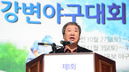 [OSEN=여주(경기), 민경훈 기자] 제1회 우리 국토사랑 생활체육 강변야구대회가 3일 오후 경기도 여주군 이포야구장에서 열렸다. 구본능 KBO 총재가 개회사를 하고 있다. 이번 대회는 4대강사업으로 조성된 전국 45개 강변야구장을