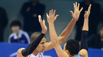 [OSEN=대전 ,백승철 기자] 3일 오후 대전 충무체육관에서 열린 '2012-2013 NH농협 V-리그' 남자부 삼성화재와 KEPCO의 개막전 경기 종료 후 선수들이 악수를 나누고 있다. '포스트 가빈' 레오(삼성화재)가 '원조 괴물' 안젤코(KEPCO)와 화력