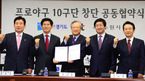 [OSEN=수원,박준형 기자] 6일 오후 경기 수원 경기도청에서 열린 KT 프로야구 10구단 창단 공동협약식에서 김진표 국회의원, 김문수 경기도지사, 이석채 KT회장, 엄태경 수원시장, 남경필 국회의원이 포즈를 취하고 있다. 경기도와