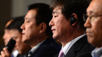 [OSEN=부산,지형준 기자] '마구매니저 아시아시리즈 2012' 공식 기자회견이 7일 오후 부산 서면 롯데호텔에서 열렸다. 삼성 류중일 감독이 요미우리 하라 감독의 답변을 경청하고 있다. 이번 대회의 슬로건은 '어울림'으로 아시아