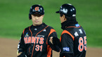 [OSEN=부산 ,백승철 기자] 8일 오후 부산 사직야구장에서 열린 '마구매니저 아시아시리즈 2012' 롯데 자이언츠와 퍼스 히트의 경기 1회초 2사 1루 홍성흔이 1타점 적시타를 치고 박계원 코치와 하이파이브를 하고 있다. 롯데 자이언