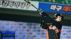 [OSEN=부산,이대선 기자] 8일 오후 부산 사직야구장에서 열린 '마구매니저 아시아시리즈 2012' 롯데 자이언츠와 퍼스 히트의 경기, 3회초 2사 1루 롯데 손아섭이 중전안타를 치고 있다. 롯데 자이언츠의 우완 에이스 송승준이 안방
