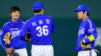 [OSEN=부산 ,백승철 기자] 9일 오후 부산 사직구장에서 열린 '마구매니저 아시아시리즈 2012' A조 예선 삼성 라이온즈(한국)와 라미고 몽키즈(대만)의 경기 7회초 2사 박한이의 타석, 장원삼과 류중일 감독이 덕아웃에서 경기를 지