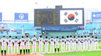 [OSEN=부산,박준형 기자] 10일 오후 부산 사직구장에서 열린 '마구매니저 아시아시리즈 2012' B조 예선 롯데 자이언츠와 요미우리 자이언츠의 경기에 앞서 롯데 선수들이 국민의례를 하고 있다 롯데는 이날 경기에서 이겨야 결승