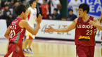 [OSEN=창원,지형준 기자] 'KB 국민카드 2012-2013 프로농구' 창원 LG 세이커스와 고양 오리온스의 경기가 23일 오후 창원 종합운동장 실내체육관에서 열렸다. 3쿼터 LG 박래훈이 3점슛을 성공시키고 백인선과 손을 맞대고 있다. 7승8패