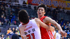 [OSEN=고양실내체, 정송이 기자] 2일 오후 경기 고양시 고양실내체육관에서 열린 '2012 KB국민카드 프로-아마 최강전' 울산 모비스와 서울 SK의 경기, 4쿼터 SK 김우겸이 모비스 김동량을 포옹하고 있다. 모비스는 대진상 SK-연세대의