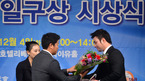 [OSEN=지형준 기자] 2012 일구상 시상식이 4일 오전 서울 청담동 리베라호텔에서 열렸다. 고양 원더스 허민 구단주가 이재환 일구회장에게 트로피를 건네받고 있다. 영예의 일구대상 수상자는 아무런 대가없이 헌신적으로 독립야