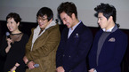 [OSEN=정송이 기자] 6일 오후 서울 충무로 대한극장에서 열린 '2012 한국영화 1억 관객을 만나다'기념행사에서 이용주감독 엄태웅 조정석이 미소짓고 있다. 이번 행사는 한국영화 관객 대표들의 핸드프린팅, 2012년을 빛낸 한국영화