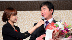 [OSEN=백승철 기자] 6일 오후 서울 중구 플라자호텔에서 열린 '2012 조아제약 프로야구 대상' 시상식에서 '최고타자상'을 수상한 이승엽이 꽃다발을 김민아 아나운서에게 건내고 있다. 조아제약과 일간스포츠가 공동 제정한 '조아