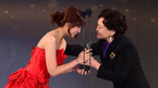 [OSEN=대전,지형준 기자] 제 1회 '케이 드라마 스타 어워즈(K-Drama Star Awards)' 시상식이 8일 오후 대전 컨벤션센터에서 열렸다. 서인국과 베스트 커플상을 수상한 정은지가 김용림에게 트로피를 건네받고 있다. '케이 드라마 스타