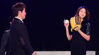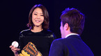 [OSEN=지형준 기자] 제 2회 카스포인트 어워즈가 10일 오후 콘래드 서울 호텔 그랜드볼룸에서 열렸다. 시구종결자로 등극한 모델 한혜진이 롯데 강민호에게 시구 받아줄 것을 부탁하고 있다. 카스포인트 대상을 두고 타자부문 TOP