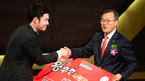 [OSEN=지형준 기자] 올 시즌 프로야구의 대미를 화려하게 장식할 '2012 팔도 프로야구 골든글러브 시상식'이 11일 오후 서울 삼성동 코엑스 컨벤션센터 오디토리움에서 열렸다. 넥센 박병호가 최재문 팔도 대표이사와 팔도 사랑의