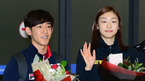 [OSEN=인천국제공항,이대선 기자] 11일 오후 복귀전에서 시즌 최고점 우승을 차지하며 성공적인 부활을 알린 '피겨여왕' 김연아가 인천국제공항을 통해 입국했다. 김진서와 김연아가 취재진을 향해 포즈를 취하고 있다. 김연아