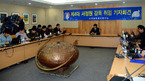 [OSEN= 곽영래 기자] 13일 오전 서울 종로구 한 식당에서 진행된 '대한농구협회 이종걸 회장 사퇴궐기 대회'에서 방열 건동대학교 총장과 다수의 농구인들이 성명서를 발표하고 있다. '한국농구 중흥을 염원하는 농구인 모임(가칭