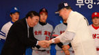 [OSEN=지형준 기자] 전라북도와 부영그룹이 13일 오전 서울 소공동 롯데호텔에서 프로야구 10구단 창단 선포식을 가졌다. 김봉연 교수가 부영그룹 이중근 회장과 인사를 나누고 있다. 이날 선포식에서 전북과 부영은 '전국민이 함