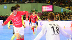 [OSEN=잠실실내체,박준형 기자] 16일 오후 서울 잠실실내체육관에서 열린 '하나은행과 함께하는 Share the Dream Football Match 2012' 경기, 희망팀 선수들이 세레모니를 하고 있다 지난해에 이어 실내 풋살경기 방식으로 치러진 이번 대회