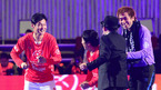 [OSEN=잠실실내체,이대선 기자] 16일 오후 서울 잠실실내체육관에서 열린 '하나은행과 함께하는 Share the Dream Football Match 2012' 경기, 가수 박상민의 축하공연때 최용수 감독이 이수근, 김병지와 함께 춤을 추고 있다. 지난해에 이어