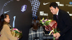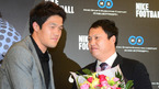 [OSEN=백승철 기자] 이운재가 17일 오후 서울 삼성동 라마다 서울호텔에서 열린 은퇴 기자회견에서 정성룡으로부터 꽃다발을 받고 있다. '거미손' 이운재(39)가 15년 프로 생활을 접고 은퇴를 선언했다. 이운재는 "선수생활 지속과