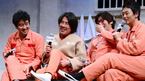 [OSEN=정송이 기자] 18일 오전 서울 압구정CGV에서 열린 '7번방의 선물' 제작보고회에서 죄수복을 입은 김정태가 포켓 주머니에 마이크를 고정시키고 있다. ‘7번방의 선물’은 6살 지능의 딸바보 용구(류승룡)와 평생 죄만 짓고 살