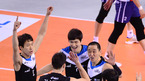 [OSEN=천안, 이대선 기자] 20일 오후 천안 유관순체육관에서 열린 '2012-2013 NH농협 V-리그' 남자부 현대캐피탈과 대한항공의 경기, 1세트 대한항공 선수들이 득점에 성공하고 환호하고 있다. 현대캐피탈은 15일 KEPCO와의 경기에서 27