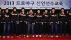 [OSEN=대전, 곽영래 기자] 4일 오후 대전 유성구 리베라호텔에서 진행된 '2013 프로야구 신인선수교육'에서 기아 신인 선수들이 포토타임을 갖고 있다. 한국야구위원회(KBO)가 2013년 프로에 첫 발을 내딛는 신인선수를 대상으로 프