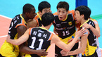 [OSEN=인천, 이대선 기자] 27일 오후 인천 도원체육관에서 열린 '2012-2013 NH농협 V-리그' 남자부 대한항공과 러시앤캐시의 경기, 2세트 득점에 성공한 러시앤캐시 선수들이 환호하고 있다. 대한항공은 지난 23일 현대캐피탈과의 경