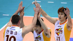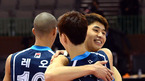 [OSEN=수원, 곽영래 기자] 29일 오후 수원 실내체육관에서 열린 '2012-2013 NH농협 V-리그' 남자부 KEPCO와 삼성화재의 경기, 2세트 KEPCO 안젤코가 득점을 올린 뒤 양준식, 박성률과 기뻐하고 있다. 삼성화재는 최근 4연승 행진을 달리며