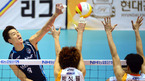 [OSEN=수원, 곽영래 기자] 29일 오후 수원 실내체육관에서 열린 '2012-2013 NH농협 V-리그' 남자부 KEPCO와 삼성화재의 경기, 2세트 KEPCO 안젤코가 삼성화재 레오를 앞에두고 스파이크를 때리고 있다. 삼성화재는 최근 4연승 행진을 달리